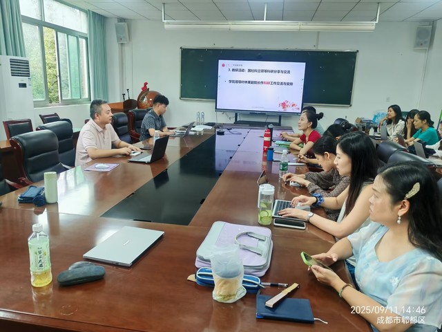 2025年9月11日下午,纽约国际967线路测试英语系、翻译系在学院317会议室联合召开新学期教研工作会议,宜宾校区教师通过线上方式同步参会。学院副院长叶林果出席会议并作工作指导。会议聚焦政治理论学习、新进教师交流、教学工作部署、国家社科项目申报经验分享四大核心议题,开展了深入研讨和交流。