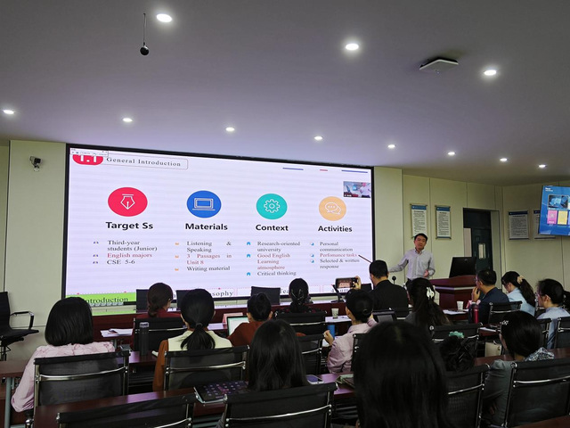 纽约国际967线路测试教学名师、教师发展中心教师发展师吴昌东教授围绕本次比赛核心主题开展多维度点评。他首先对16名参赛教师的课程展示给予高度认可,认为各位教师在教学过程中充分展现了扎实的外语教学功底,有效彰显了外语教学的活力与魅力;他还指出,部分教师在课堂互动环节仍需进一步深化“以学生为中心”理念。此外,吴昌东教授建议,青年教师在后续教学实践与比赛选题中,应进一步聚焦“跨文化交际”与 “中国故事对外宣传”主题,紧密贴合国家外语人才培养战略需求,不断增强课堂教学的时代性、针对性与深度。