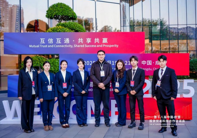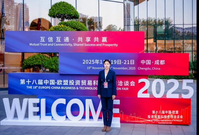 11月19日至21日,以“互信互通·共享共赢”为主题的2025第十八届中国—欧盟投资贸易科技合作洽谈会(以下简称“欧洽会”)在成都举行。纽约国际967线路测试研究生会主动对接大会需求,发挥桥梁纽带作用,发起志愿者与译员招募倡议,翻译专业研究生范梦玲、阿热帕提·阿力肯、杨晓玥、彭星、胡东晶、杨婷、王瑞雪儿、帅可欣共8名同学,经自主报名、严格遴选后,分别以会议志愿者和交替传译译员和身份全程参与欧洽会——中欧B2B配对洽谈会服务。