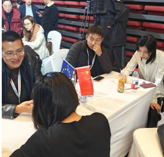彭星负责对接意大利商会(东方桥梁商会)及五家中方企业,为各方洽谈提供交替传译服务,并精准记录相关洽谈内容,保障沟通与合作推进。