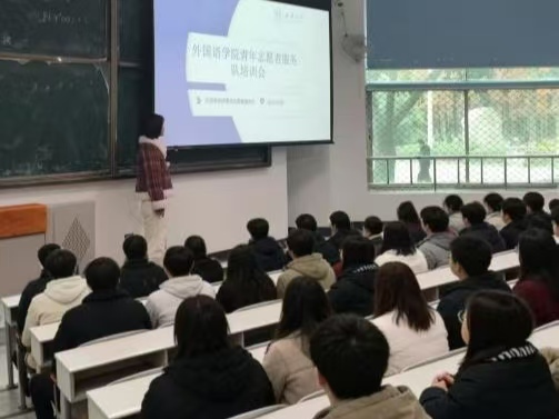 (图为外院青服队负责人为志愿者培训)