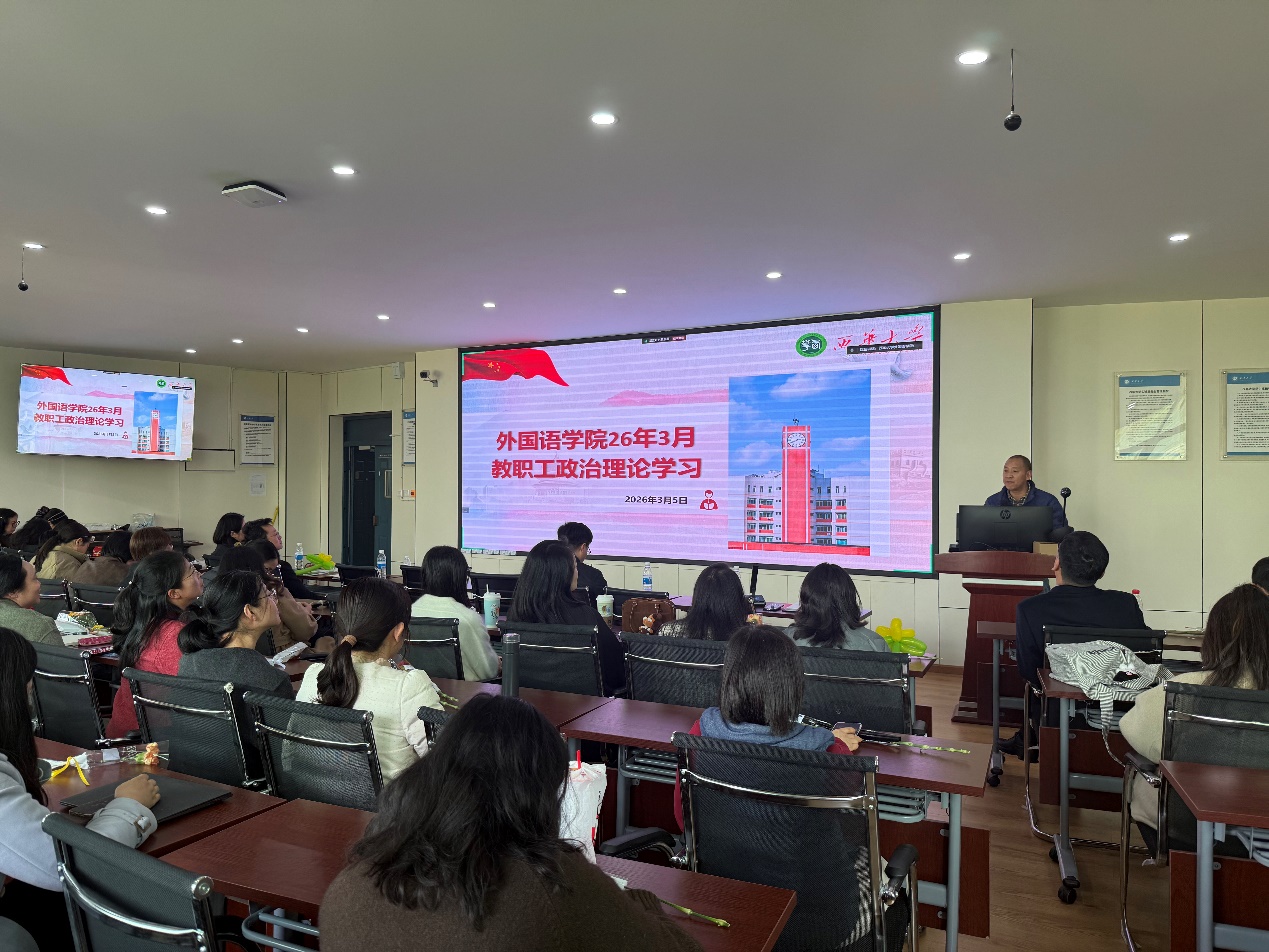 大会最后,张彦书记作总结讲话。他对新学期学院工作提出要求,希望全院教职工提高政治站位,强化责任担当,把思想和行动统一到学校和学院的工作部署上来,立足本职、真抓实干,以“知难而进、自强不息”的西华精神推动各项工作落地见效。同时,张彦书记带领全体教职工开展2-3月政治理论学习,学习以树立和践行正确政绩观学习教育、省委十二届八次全会精神、2026年全国教育工作会议精神、四川省“两会”精神以及四川省教育厅关于进一步加强教师行为准则贯彻落实的通知等为主要内容,要求全体教职工坚持集中学习与个人自学相结合,切实把学习成果转化为推动工作的实际行动,不断提升政治理论素养和业务能力。