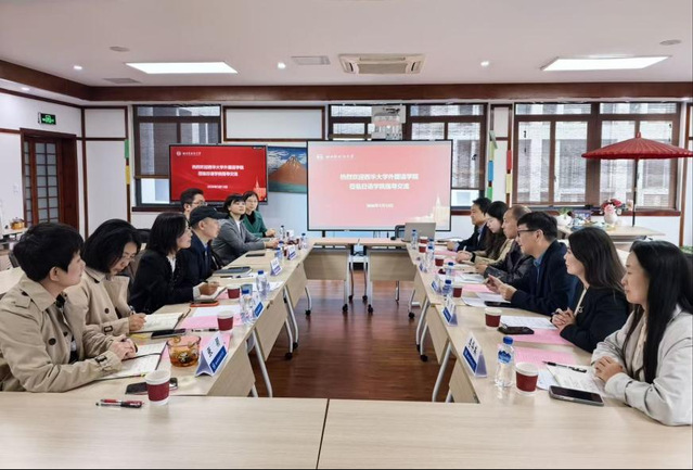 四川外国语大学副校长胡安江在党建工作交流中作了专题发言。他在交流中强调,要推动教研与党建深度融合,将红色文化、家国情怀教育有机融入专业教学全过程,牢牢把握立德树人根本任务,实现价值塑造、知识传授与能力培养的有机统一,培养兼具扎实专业素养与坚定理想信念的复合型外语人才。这一理念得到双方参会人员的广泛认同与高度共鸣,为后续党建引领学科发展指明了方向。双方重点就基层党组织建设、党建与业务工作融合路径展开深入沟通。