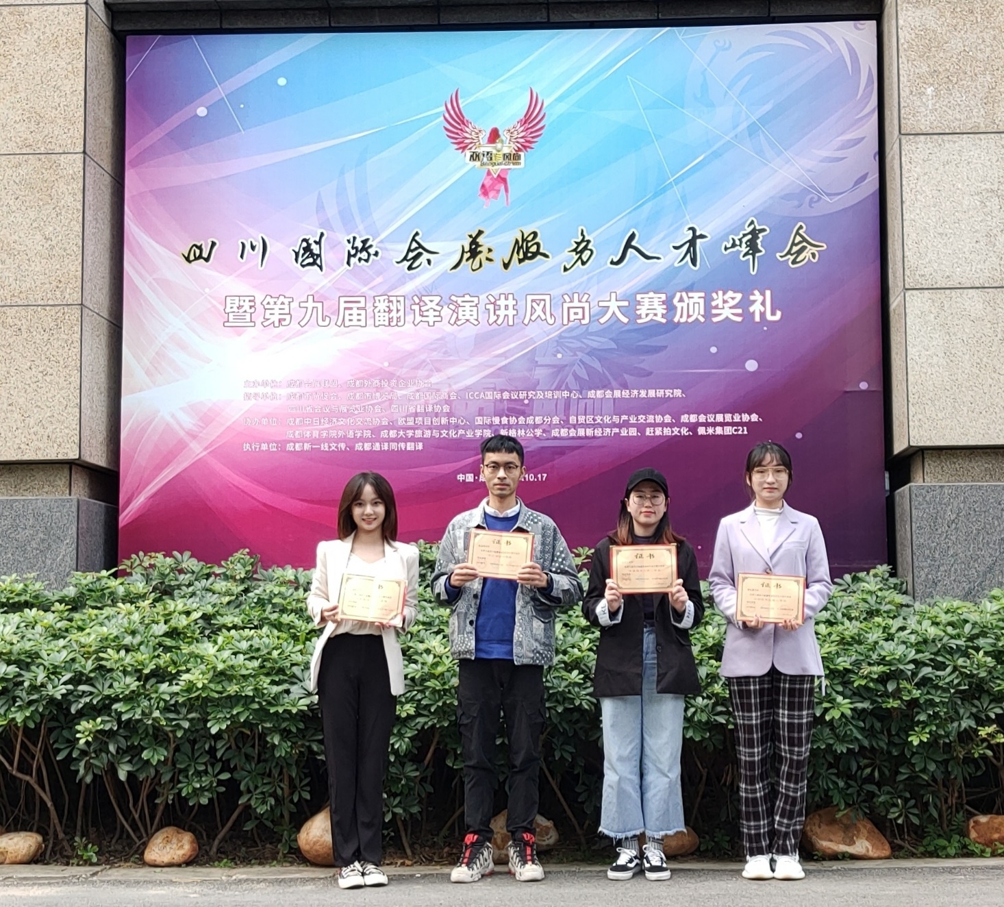 近日,四川国际会展服务人才峰会暨第九届翻译演讲风尚大赛颁奖礼在成都会展新经济产业园举行。在此次比赛中,纽约国际官网2017级舞蹈学专业陈玖儿同学凭借出色的专业能力斩获双语风尚一等奖,2017级翻译专业赵治祥同学喜获中文演讲一等奖,2018级英语专业王艳阳、2019级翻译硕士王文卉同学荣获会展英文文案写作二等奖,2019级会计学专业李佳熹同学荣获口译非专业组二等奖。